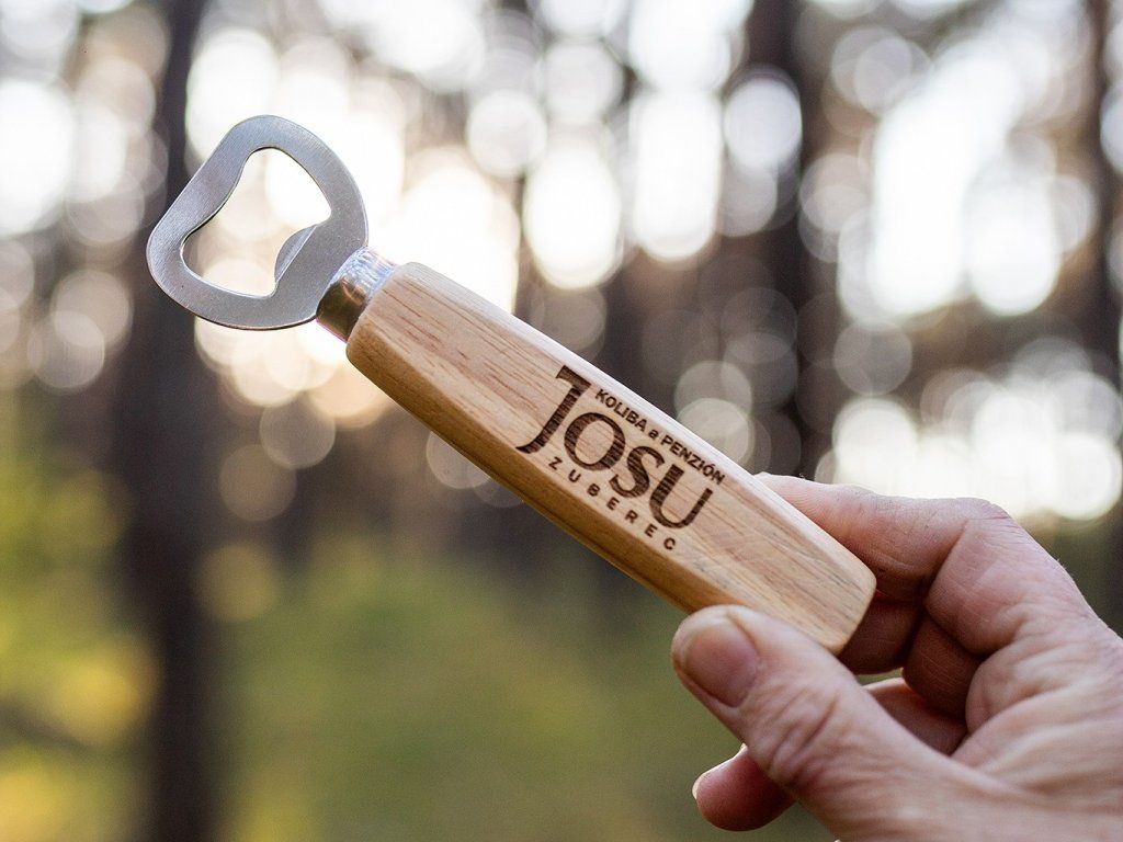 Dřevěný otvírák s firemním logem